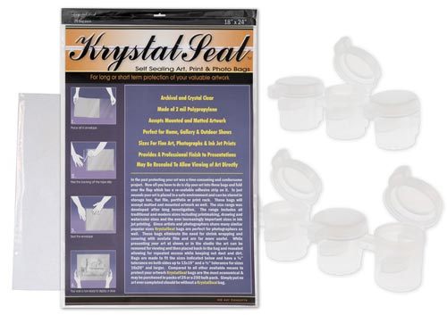 | Artist Seal Bags & Paint Cups Krystal Seal Bags offer protection for art and photos. All you have to do is slip your art into these bags and fold over the flap which has a resealable adhesive strip on it. In just seconds, your art is safe! Creative Mark Paint Cups are inexpensive and strong enough to contain water or paint. |